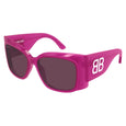 Full acetate feminine concept with a striking and highly recognizable branding. Oversize rectangular shape. The BB logo is applied on both temples through the flush enamel technique, resulting in smooth surfaces with no steps or gap between logo and temples.